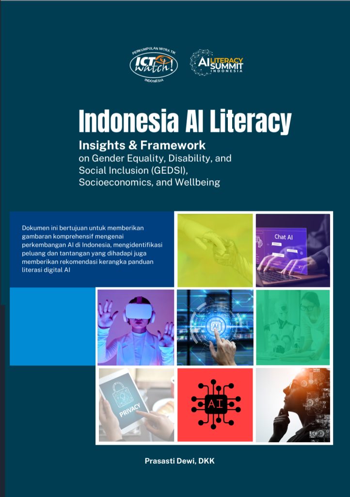 Buku ini pun menawarkan Kerangka Panduan Literasi AI Indonesia (KPLAI) dengan tiga tingkatan penguasaan: understanding, usage, dan upliftment, yang ditujukan untuk memperkuat kapasitas masyarakat dalam memahami, memanfaatkan, serta meningkatkan kualitas hidup melalui AI. Pendekatan multi-stakeholder yang melibatkan pemerintah, akademisi, industri, OMS, dan komunitas lokal ditekankan sebagai kunci untuk memastikan pengembangan AI yang inklusif, adil, dan berdampak positif bagi seluruh lapisan masyarakat.” (ICT Watch)